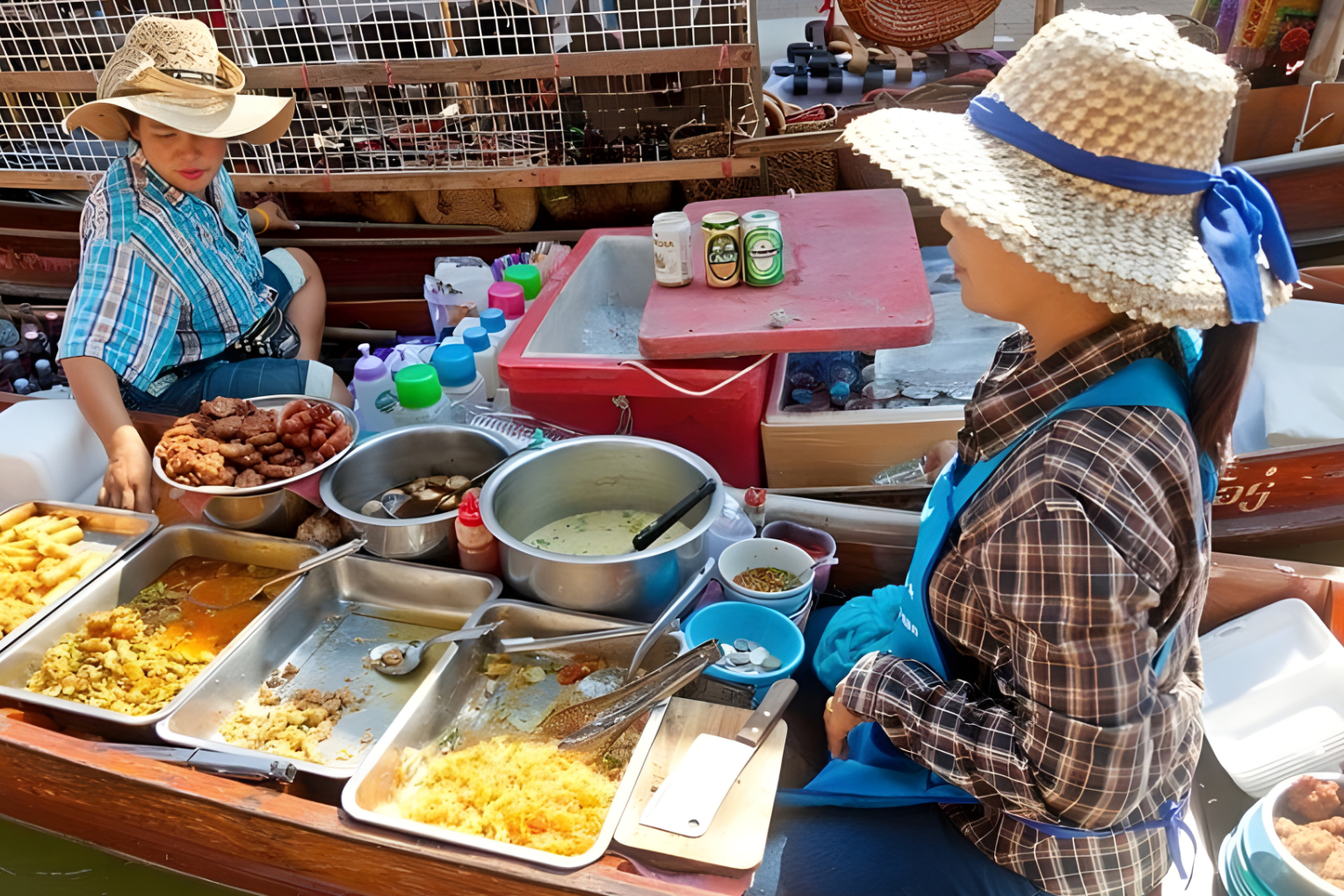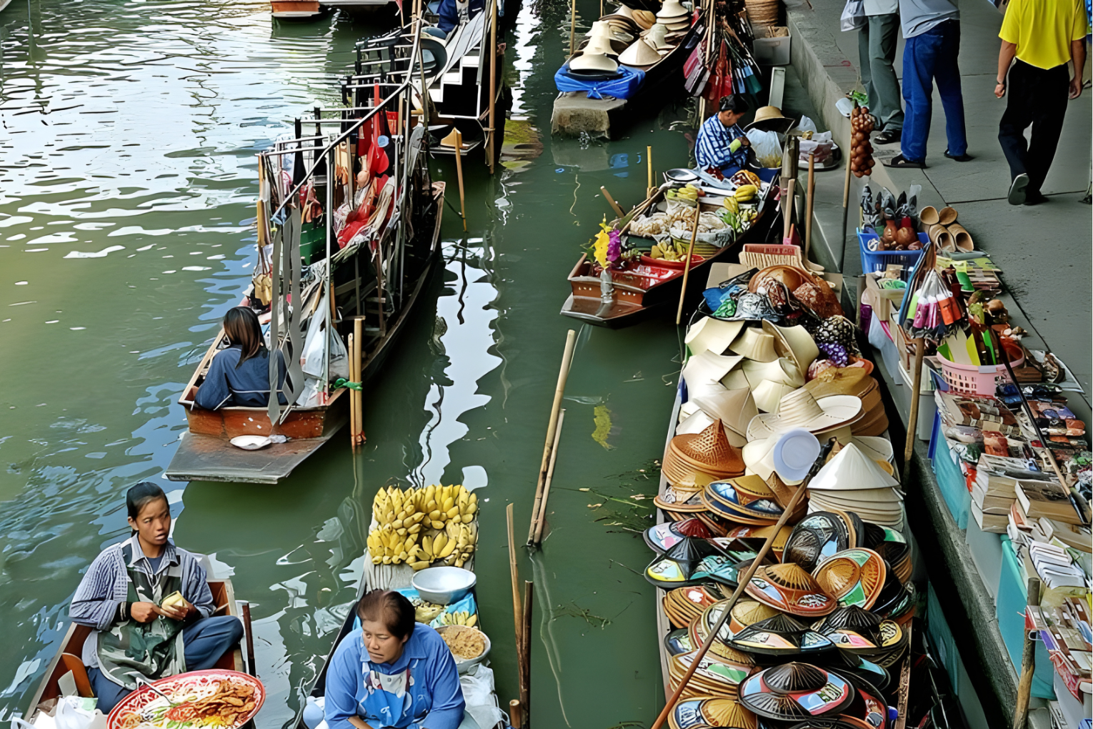 As you move through the market, you will see vendors selling goods directly from wooden boats. From fresh fruits and vegetables to souvenirs and hot meals, everything is prepared and served right on the water. It is a lively and colorful place that shows how traditional Thai trade still exists today.